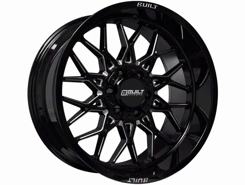 This 20x10 Built Off Road BTO-2 Gloss Black Milled 6-Lug Wheel is completed in a high-quality gloss black finish with steel milled accents that will make the wheel the envy of everyone. There is a durable clear coat that protects against driving hazards.One-Piece Cast Aluminum Construction. This wheel is manufactured using gravity casting. Gravity casting is the process of pouring a molten aluminum alloy into a wheel mold or form utilizing the earth's own gravity to help fill the mold. The result is a strong, durable wheel that has the same good looks as a more expensive wheel, at a fraction of the price.