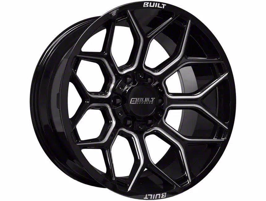 The 20x10 Built Off Road BTO-4 Gloss Black Milled 6-Lug Wheel is given a gloss black finish to keep your wheel looking sharp. The milled steel accents are where it literally shines through, making the split section of the spokes stand out along the faux beadlock.