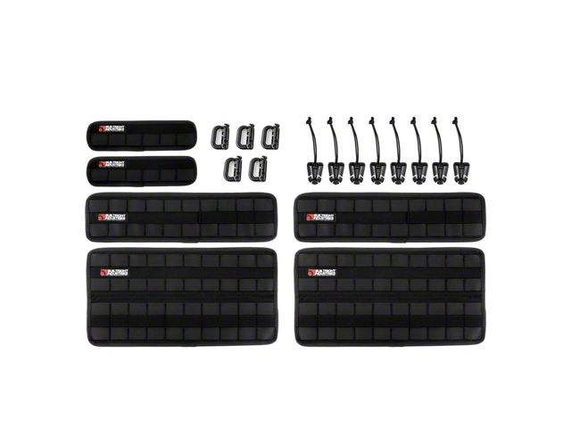 Top Quality Storage. The BuiltRight Industries Velcro Tech MOLLE Panel is a highly adaptable storage solution, available in a convenient six-piece kit. Crafted from rugged black Denier 1000 nylon fabric, these panels are built to endure the toughest challenges and conditions. They feature a reliable hook and loop fastening system, ensuring a secure attachment to various surfaces, making them ideal for organizing tools and equipment. The design incorporates an elastic row for versatile storage options, making these panels a practical choice for individuals seeking a customizable and durable organization solution for their gear and accessories.
