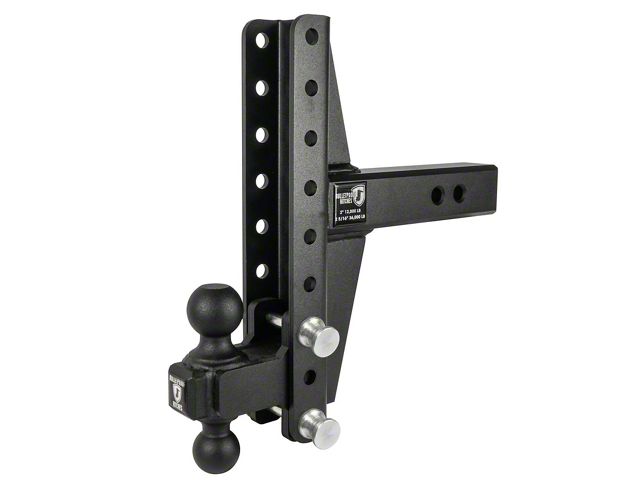 Strength and Versatility When Towing. If you want a better towing experience, consider this BulletProof Hitches Extreme-Duty 2.50-Inch Receiver Hitch Ball Mount; 4-Inch and 6-Inch Drop/Rise Offset. This hitch is a versatile towing accessory that can be flipped in a rise or drop position and be adjusted through its 7 ride height levels. It carries up to a 36,000-pound towing capacity and has a 6,000-pound tongue weight capacity, ensuring robust functionality.