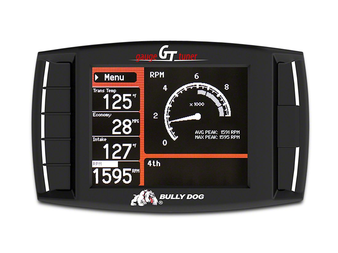 Built for Handiness. The Bully Dog GT Tuner is designed all round for convenient, intuitive use and multi-layered usefulness. Beyond the preloaded tunes, the tuner also includes numerous other functions and adjustments. It can read and clear DTC codes. The physical construction of the tuner makes it easy to use also, with straightforward controls, a large full-color screen with easy to read text, numbers, and gauges, and an included pivoting mount arm that lets you set up the tuner exactly where you want it on dash or windshield.