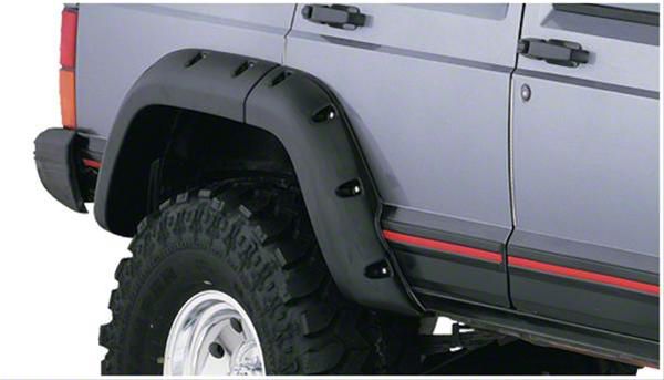 Application. The Bushwacker Cut-Out Fender Flares are structured to accurately fit 1984-2001 Jeep Cherokee XJ 4-Doors.