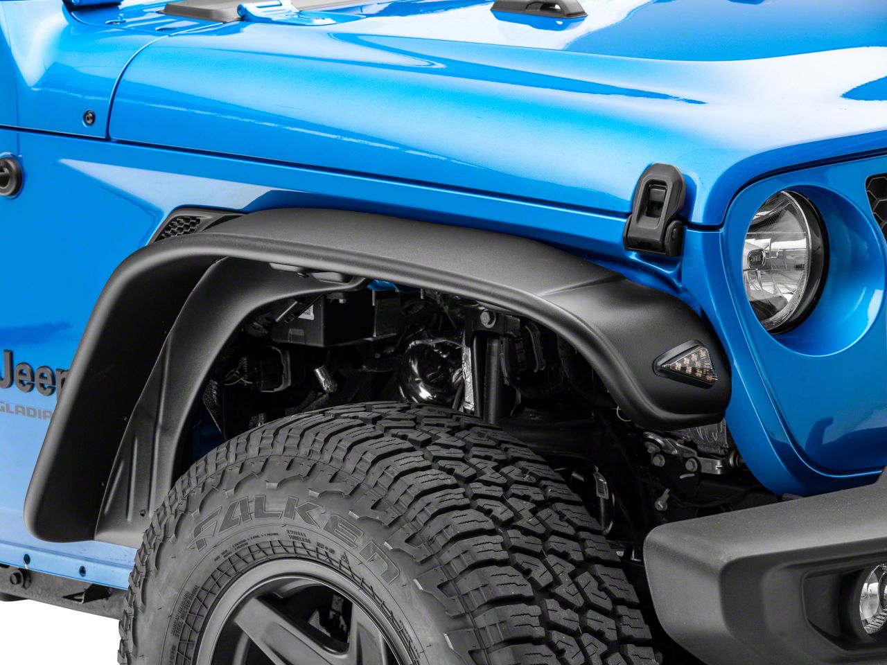 Application. These Textured Black Bushwacker Flat Style Fender Flares are designed to fit 2020-2026 Jeep Gladiator JT models.