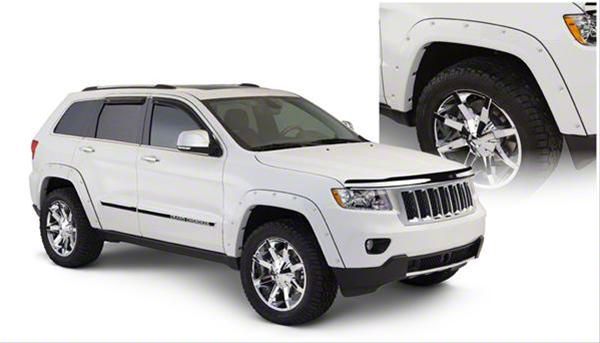 Rough and Tough Upgrade. Add character to your Grand Cherokee WK2 with the Bushwacker Pocket Style Fender Flares for the Front and Rear in Matte Black. This set of 4 fender flares in pocket/rivet style features sunken bolts, giving your ride a tough and imposing aura that’s ready to conquer the off-roads. These fender flares complement your large tires and also offer maximum coverage and protection against dust and debris.