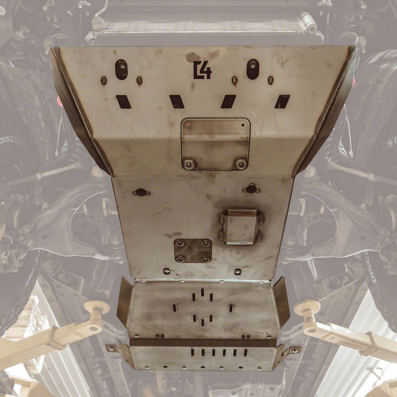 Heavy-Duty Protection. The C4 Fabrication Front Skid Plate offers reliable and rugged protection for the undercarriage of your vehicle. This skid plate helps shield vital engine components from damage caused by rough terrain and road debris. It is an essential upgrade for off-road enthusiasts and those seeking enhanced durability during demanding conditions.