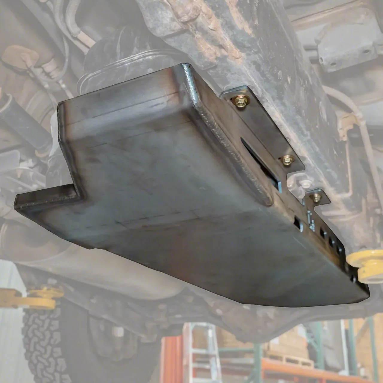 Construction and Appearance. Crafted from durable 3/16-inch pickled and oiled steel plate, this skid plate features a solid bottom for maximum impact resistance and side cutouts for effective water and debris drainage. The bare steel version requires painting or powder coating for corrosion protection unless ordered pre-coated. With a 62-pound weight, it offers serious strength without being overbuilt.