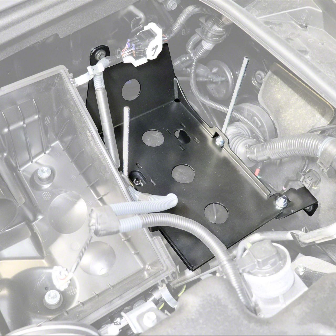 Installation. Installing this tray is straightforward and designed for a seamless addition to your vehicle’s engine bay. No drilling is required, and the tray mounts securely using existing locations, allowing for a versatile installation process that can be completed with basic tools. Its unique design ensures that the additional battery stays stable even during rugged driving conditions.