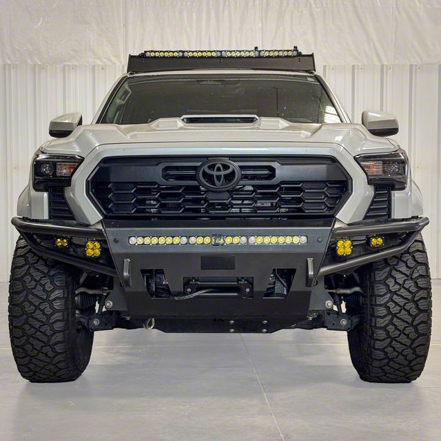Application. This C4 Fabrication Hybrid Front Bumper with 30-Inch Light Bar Cutout fits 2024 to 2026 Toyota Tacoma models, excluding TRD Off-Road and TRD Pro trims.