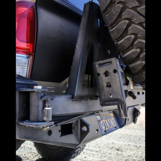 This bumper requires cutting of the side panels; Professional installation is recommended but not required. Blind spot monitoring system is not supported with this bumper.Lower portion of bedsides behind rear fenders need to be cut off for Hi-Clearance bumper to fit onto the vehicle.3/4” thick D-ring tabs fully welded front and back come standard.Comes standard with hidden hitch.License plate flips up for access to receiver hitch and trailer wiring connection.License plate light included.All Tacoma rear bumpers come with the reverse light cutouts. Cutouts are designed to fit Baja Designs S2 flush mount, Rigid SR-M 2×3 flush mount or Extreme LED 2×3 flush mount.Aftermarket rear suspension/lift recommended but not required.150lbs without swing arm, 250lbs with swing arm and accessories.Jerry can carrier is designed to fit multiple brands of cans including Midwest, Scepter, NATO, and some jerry can shaped storage containers.Unless you choose our powder coated option, this product will need to be painted or powder coated before installation to prevent rust.