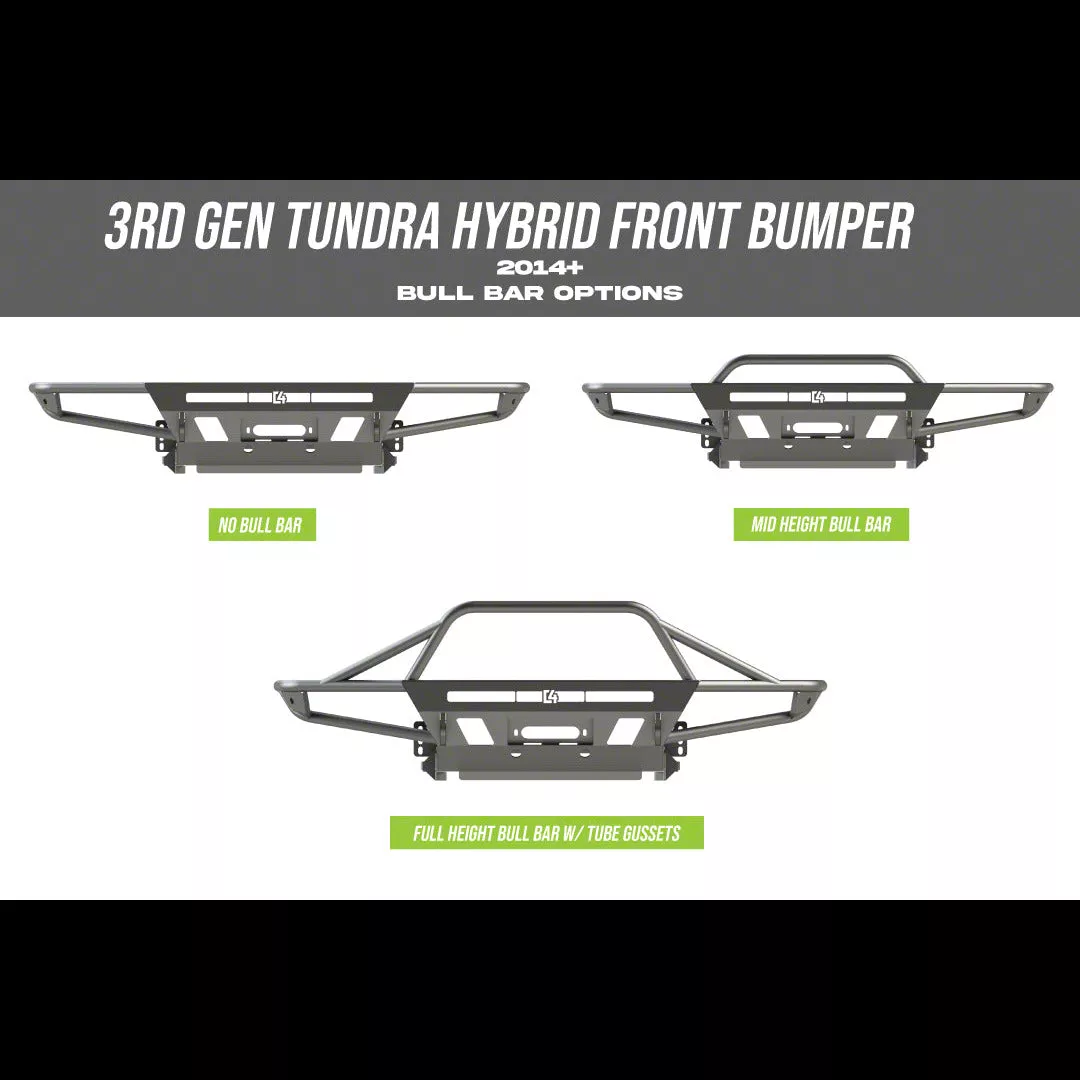 C4 Fabrication Hybrid Front Bumper with 30-Inch Light Bar Cutout and Mid-Height Bull Bar; Standard Width; Black (14-21 Tundra w/o Parking Sensors)Find parts that fit my vehicle