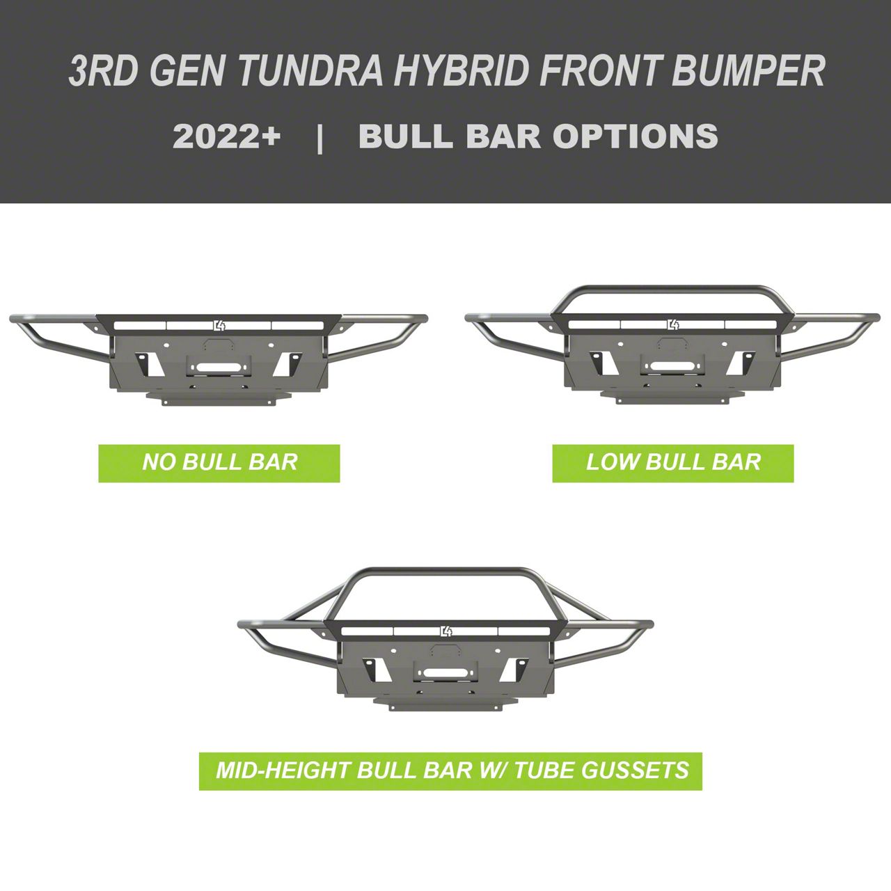 Application. The C4 Fabrication Hybrid Front Bumper with 30-Inch Light Bar Cutout; Black fits 2022-2026 Tundra models.