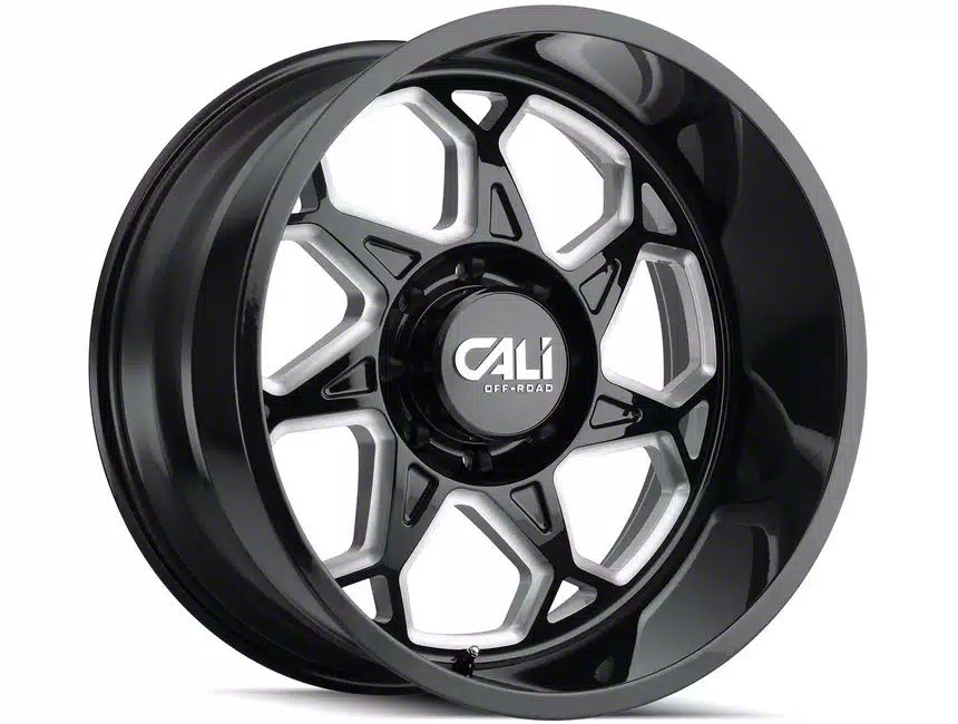 This 22x12 Cali Off-Road Sevenfold Gloss Black Milled 6-Lug Wheel is completed in a high-quality gloss black finish with steel milled accents that will create a striking appearance. There's a durable clear coat that protects against driving hazards.