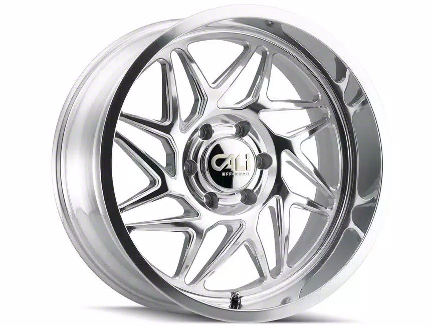 This 22x12 Cali Off-Road Gemini Polished Milled 6-Lug Wheel is completed in a high-quality polished finish with steel milled accents to stand out in a crowd. There's a durable clear coat that protects against daily driving hazards.