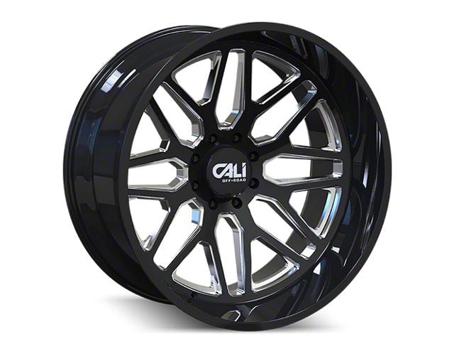 This 20x10 Cali Off-Road Invader Gloss Black Milled 6-Lug Wheel; 20x10; -25mm Offset is completed in a high-quality gloss black finish with steel milled accents that will be the envy of everyone. For added protection and looks, there is a clear coat designed to handle whatever the road, or beyond, throws at it.