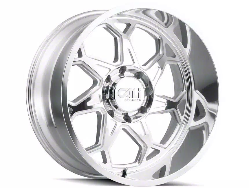 This 22x12 Cali Off-Road Sevenfold Polished Milled 6-Lug Wheel is completed in a high-quality polished finish with steel milled accents to stand out in a crowd. There's a durable clear coat that protects against daily driving hazards.