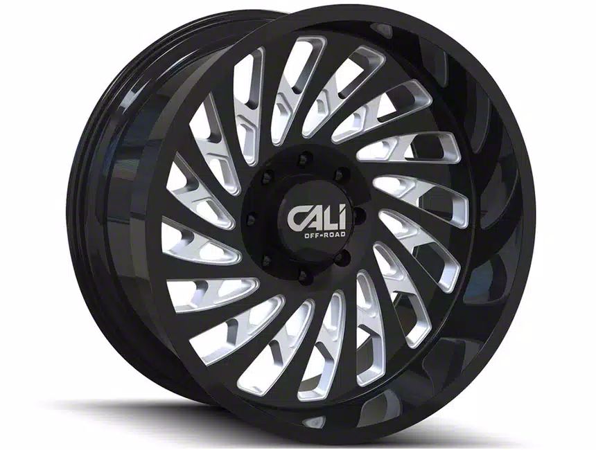 This 22x12 Cali Off-Road Switchblack Gloss Black Milled 6-Lug Wheel is completed in a high-quality gloss black finish with steel milled accents that will create a striking appearance. There's a durable clear coat that protects against driving hazards.