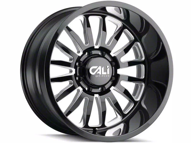 The 20x10 Cali Off-Road Summit Gloss Black Milled 6-Lug Wheel is given a gloss black finish to keep your wheel looking sharp. The milled steel accents are where it literally shines through, making the split section of the spokes stand out along the faux beadlock.