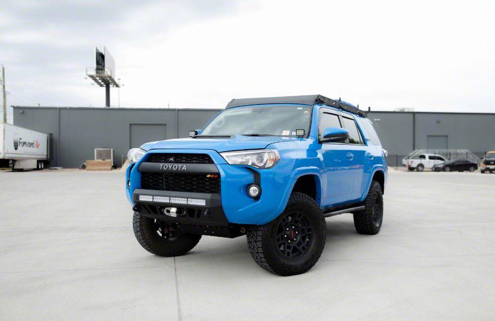 Application. This Cali Raised LED Stealth Winch Mount Front Bumper with 32-Inch Combo Beam LED Bumper Light Bar is tailored for all 2014-2024 Toyota 4-Runners.