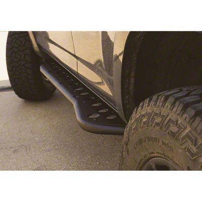 Take On the Trails with Confidence. Take on the trails with confidence when you install these Cali Raised LED Step Edition Bolt On Rock Sliders. These rock sliders combine heavy-duty tubular steel construction and high and tight installation to provide your 4Runner’s rocker panels with excellent protection against impact damage. Additionally, these sliders' top section mounts completely perpendicular to your truck, allowing them to function as steps for more convenient access.