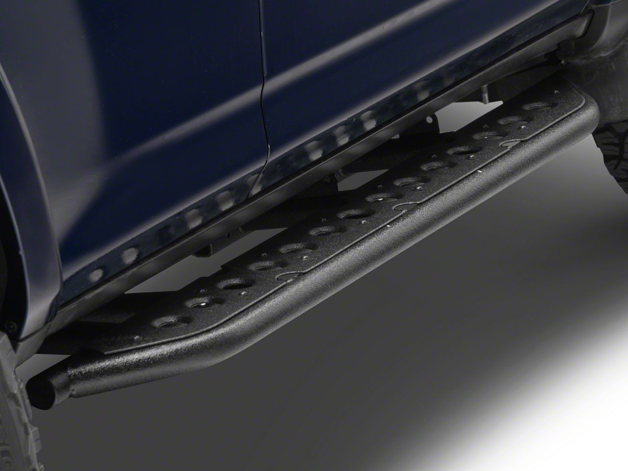 Installation. Putting these Cali Raised LED Step Edition Bolt On Rock Sliders with Bed Liner Filler Plate on your ride is easy and requires no drilling.