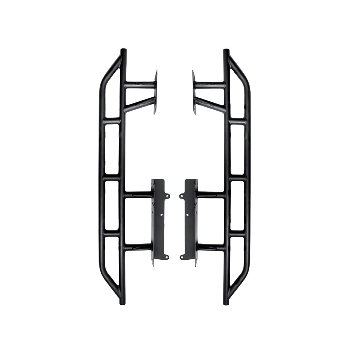 Enhanced Protection and Style. The heavy-gauge 0.187-inch steel frame attachment plates provide a solid foundation, guaranteeing a secure fit to your vehicle. Finished with a textured black powder-coat, these rock sliders not only offer superior protection but also add a rugged, stylish look to your 4Runner. Additionally, they double as convenient steps, facilitating easier access to your vehicle's cabin.