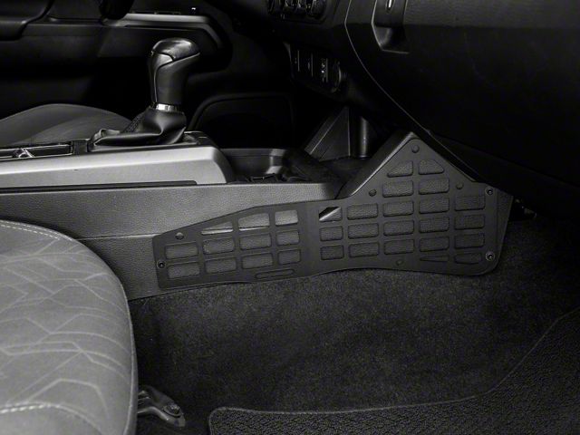 Versatile and Accessible Storage. Maximize your Tacoma’s interior space by using the sides of the center console with style and durability. Installing this Cali Raised LED Center Console Side Molle adds a complete mounting system to keep your smaller and more important items within reach. This practical solution organizes your items, eliminates the messy pile of your tools and gears, and keeps them from shifting, especially on rugged trails.