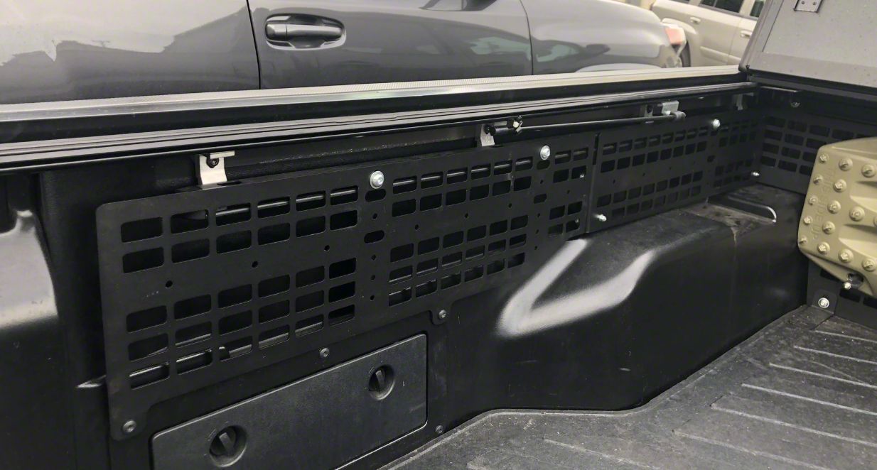 Mounts Your Items in the Truck Bed. With the Cali Raised LED Rear Bed Molle System, you can make great use of some of the unused space in the bed of your Toyota Tacoma. This rear panel goes on the driver’s side to mount various items, which can include axes, bags, shovels, and trail gear. This eliminates the inconvenience of tolerating rolling noise and potential damage on the truck bed.