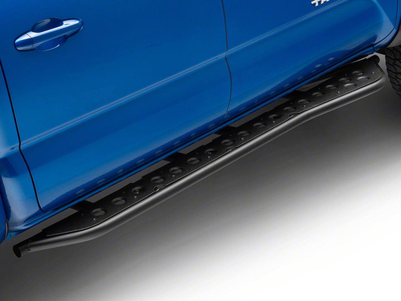 Application. These Cali Raised LED Step Edition Rock Sliders with Kickout and Bed Liner Filler Plates in Textured Black are designed to fit 2005-2023 Toyota Tacoma Double Cab models.