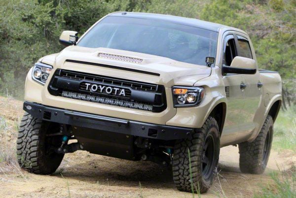 Application. The Cali Raised LED 42-Inch Curved LED Light Bar with Hidden Grille Mounting Brackets and Blue Backlight Switch; Spot Beam fits all 2014-2021 Toyota Tundra models.