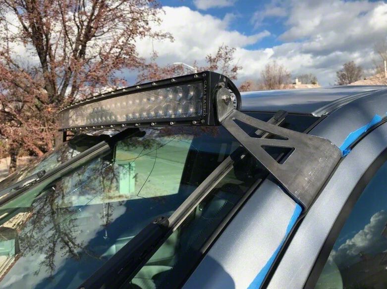 Champion Grade Mounting System. Mount a 52-inch curved LED light bar atop your Toyota Tundra’s hood with the Cali Raised LED 52-inch Curved LED Light Bar Roof Mounting Brackets. These mounting brackets dock slightly over your windshield, fitting a 52-inch single row or dual row LED light bar while allowing perfect visibility of the road.