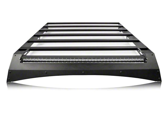 Sturdy Construction. The low-profile design of the Cali Raised LED Economy Roof Rack ensures a perfect fit, reducing vibrations and wind noise while you're driving. The lightweight yet sturdy aluminum construction is powder-coated with a sleek black finish, making this rack not only functional but stylish as well. Upgrade your truck's capabilities and aesthetics with the Cali Raised LED Economy Roof Rack today. This rack does not have a light bar cut-out.