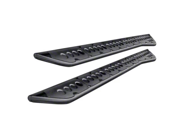 Bolder Off-Road Confidence. Experience solid off-road confidence by ensuring that your side panels are well-protected with these Cali Raised LED Step Edition Rock Sliders with Kickout and Filler Plates and Bed Liner Coating. These full-length sliders are engineered to effectively block the trail debris that might cause dents, scratches, and other damages to your truck. Moreover, the frameworks feature tubular rails with step plates so that you can safely get in and out of your CrewMax.