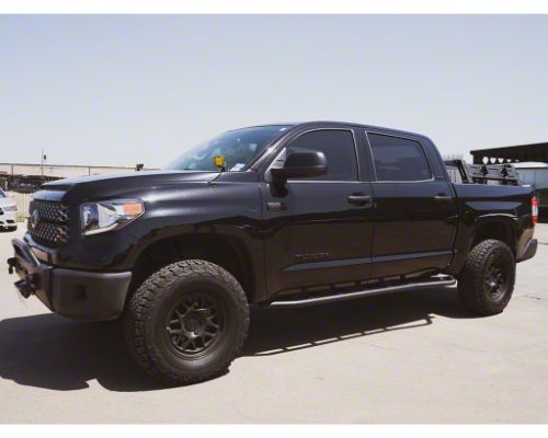 Application. These Cali Raised LED Trail Edition Rock Sliders with Textured Black finish are engineered to fit 2014-2021 Toyota Tundra CrewMax models.