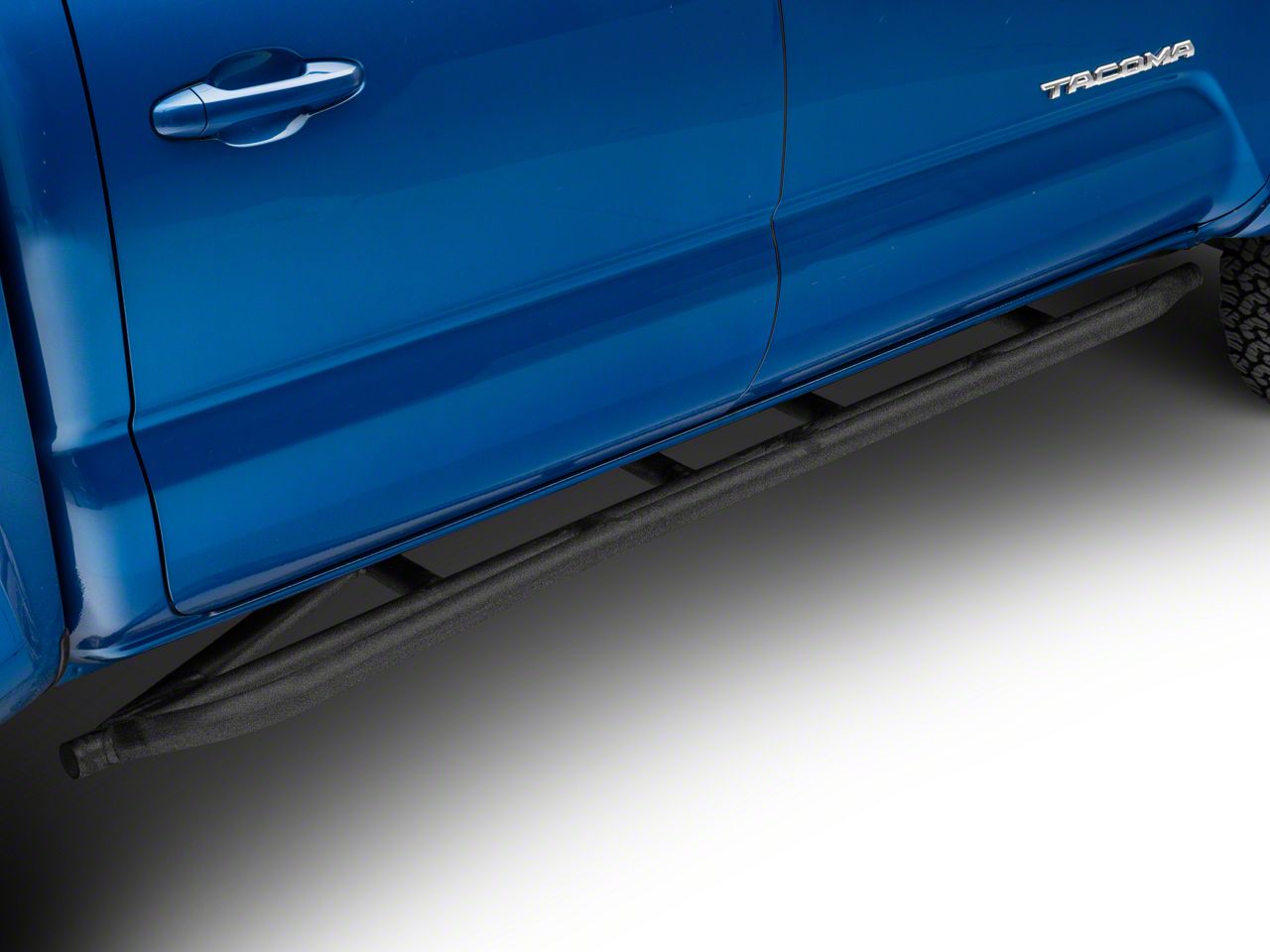 Rugged Protection. Protect your Toyota Tacoma from trail damage by upgrading to a set of Cali Raised LED Trail Edition Wheel-to-Wheel Bolt-On Rock Sliders. These Rock Sliders are designed to give your Tacoma a rugged off-road appearance while providing reliable side and undercarriage protection from brush, rocks, and other trail hazards. As an added bonus the 25 Degree wheel-to-wheel kickout design provides a convenient step for easy access into the cab and bed of your Tacoma.