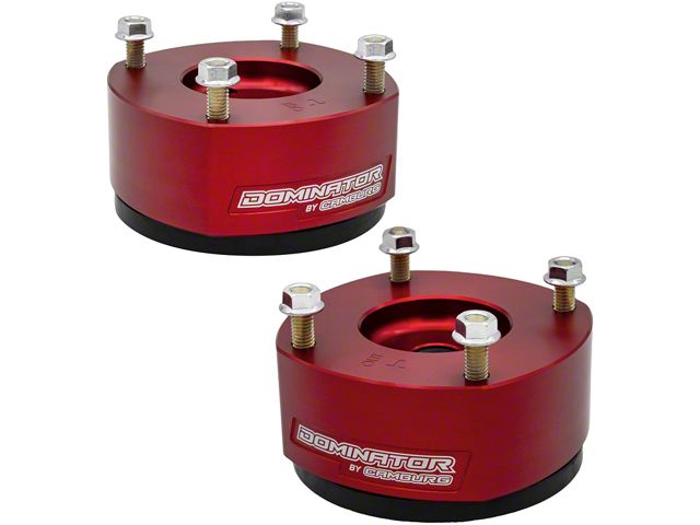 Elevate Your Suspension. The Camburg Dominator Series Coil Spring Spacer Kit is a premium upgrade that provides an additional 2-inch front-end lift. Designed to enhance your truck’s appearance and performance, this preloaded spacer kit improves ground clearance, allowing for larger tires and better off-road capability.