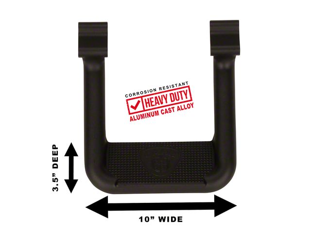 Safety and Utility. For the ultimate in off-road performance and comfort, these Carr HOOP II; Side Step; XP3 Black Powder Coat; Pair are the perfect accessory for your Jeep Wrangler JL. These Heavy-Duty Side Steps are crafted from cast aluminum to provide long lasting durability and strength. They feature a 3 inch stepping surface for extra traction when entering or exiting your vehicle. The XP3 Black Powder Coat Finish resists fading, scratching, pealing and chipping while providing an attractive appearance that will enhance the look of any Jeep.