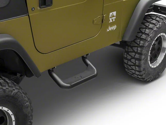Stylish Accent. Carr's Black Super Hoop Steps are a great addition to your 1997-2006 Jeep Wrangler TJ since they provide a stylish yet off road look for your Jeep that will help it stand out on the road. They also work to ensure you and your passengers have access to a stable step while hopping into your cab, which is perfect both on and off road.