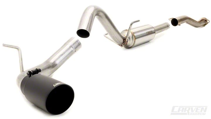 Deep, Powerful Sound. Add more power and meanness to your off-road-ready Tacoma with the Carven Exhaust Progressive Series Single Exhaust System with Black Tip. This single exhaust system will deliver powerful sound during idle, when cruising, and during acceleration all the while minimizing in-cab noise.