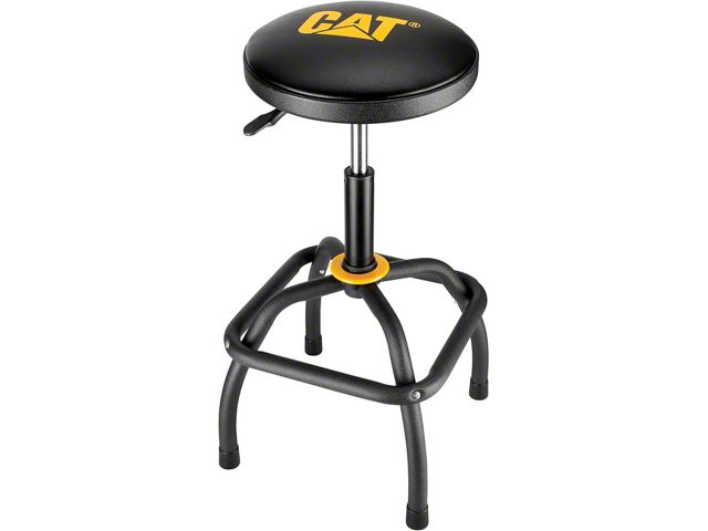 Construction and Appearance. Built to withstand the demands of a workshop environment, this shop stool features a compact base that provides stability without taking up too much space. The combination of gold yellow and matte black finishes not only adds a vibrant touch to your workspace but also reflects the CAT brand's commitment to quality and durability.