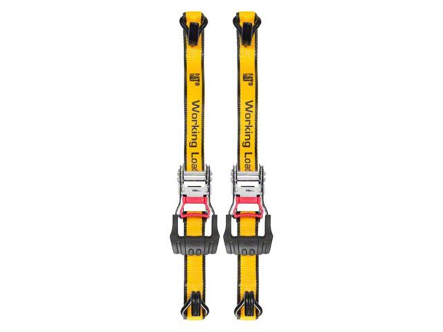 Each strap is rated for 4,500 pound breaking strength and 1,500 pound working load capacity. The high visibility yellow straps are constructed of heavy-duty polyester webbing that resists stretching, tearing and rot.