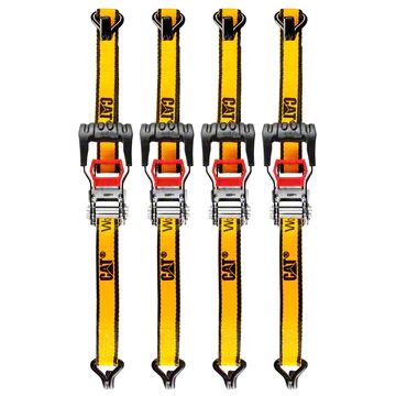 Strapping down payloads is the easiest way to secure items while on the go. The CAT 4 Piece 1.25 Inch by 12 Foot Ratchet Tie Down Set is a great way to secure your dirt bikes, ATVs, cargo and more. The set includes four high visibility yellow ratcheting
