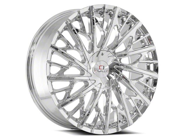 This 22x8.5 Cavallo CLV-30 Chrome 5-Lug Wheel; 22x8.5; 38mm Offset is completed in a high-quality chrome finish that will make everyone take notice. Using a 3-stage process involving copper, nickel and chrome, you get a sensational bright wheel that can withstand the rigors of daily driving.