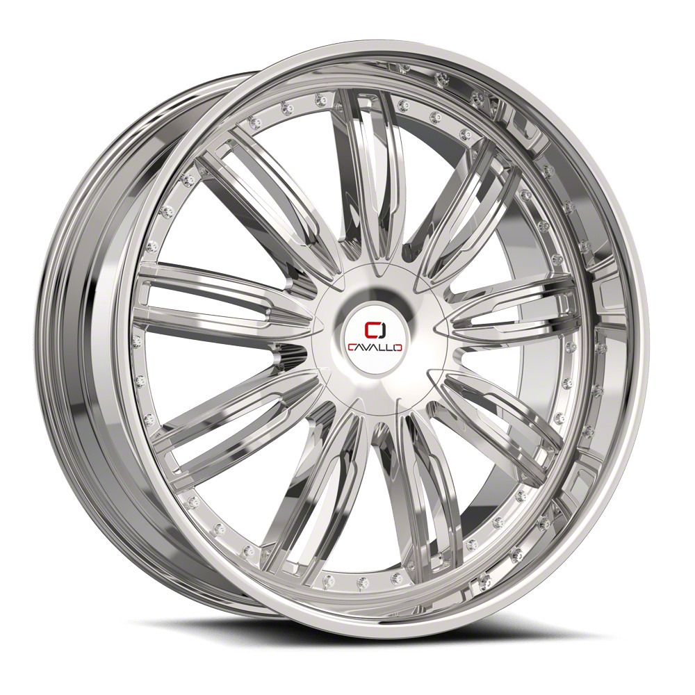 This 22x8.5 Cavallo CLV-54 Nano Chrome Wheel; 22x8.5; 38mm Offset is completed in a high-quality chrome finish that will make everyone take notice. Using a 3-stage process involving copper, nickel and chrome, you get a sensational bright wheel that can withstand the rigors of daily driving.