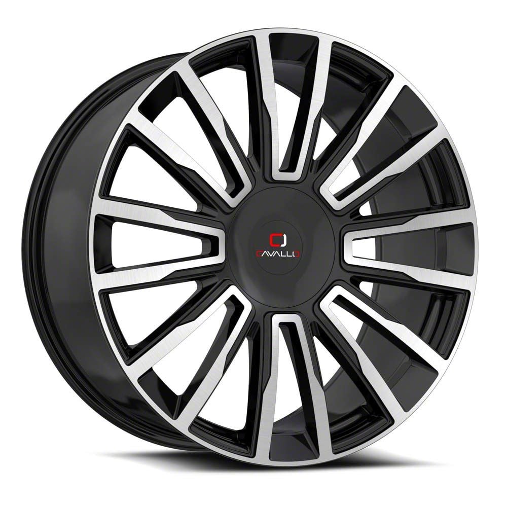 This 26x9.5 Cavallo CLV-47 Gloss Black and Machined 6-Lug Wheel; 26x9.5; 25mm Offset is completed in a high-quality gloss black finish with steel machined accents that will make everyone take notice. For added looks and strength, the wheel features a durable clear coat that withstands the rigors of daily driving.