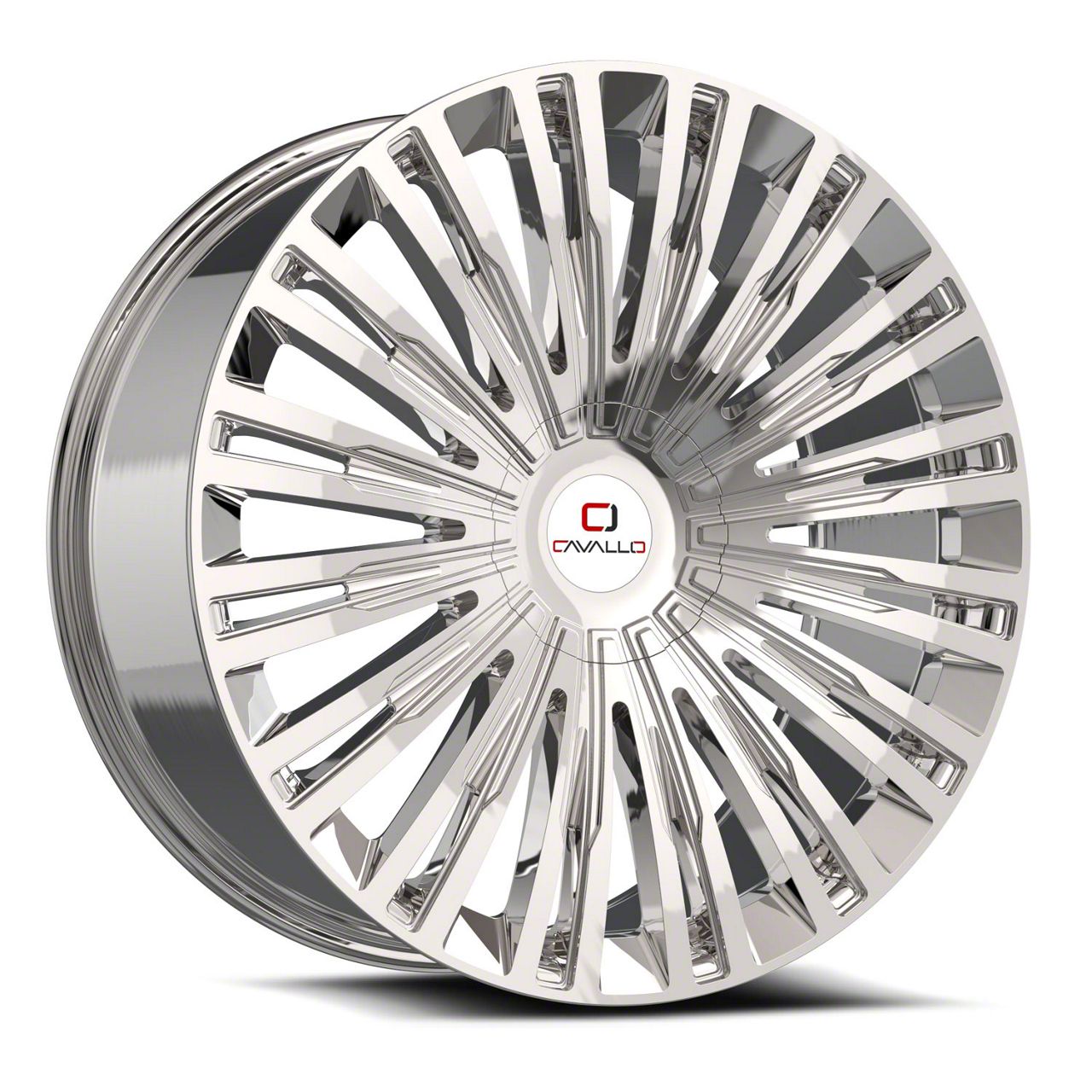 This 22x9.5 Cavallo CLV-48 Nano Chrome 6-Lug Wheel; 22x9.5; 25mm Offset is completed in a high-quality chrome finish that will make everyone take notice. Using a 3-stage process involving copper, nickel and chrome, you get a sensational bright wheel that can withstand the rigors of daily driving.