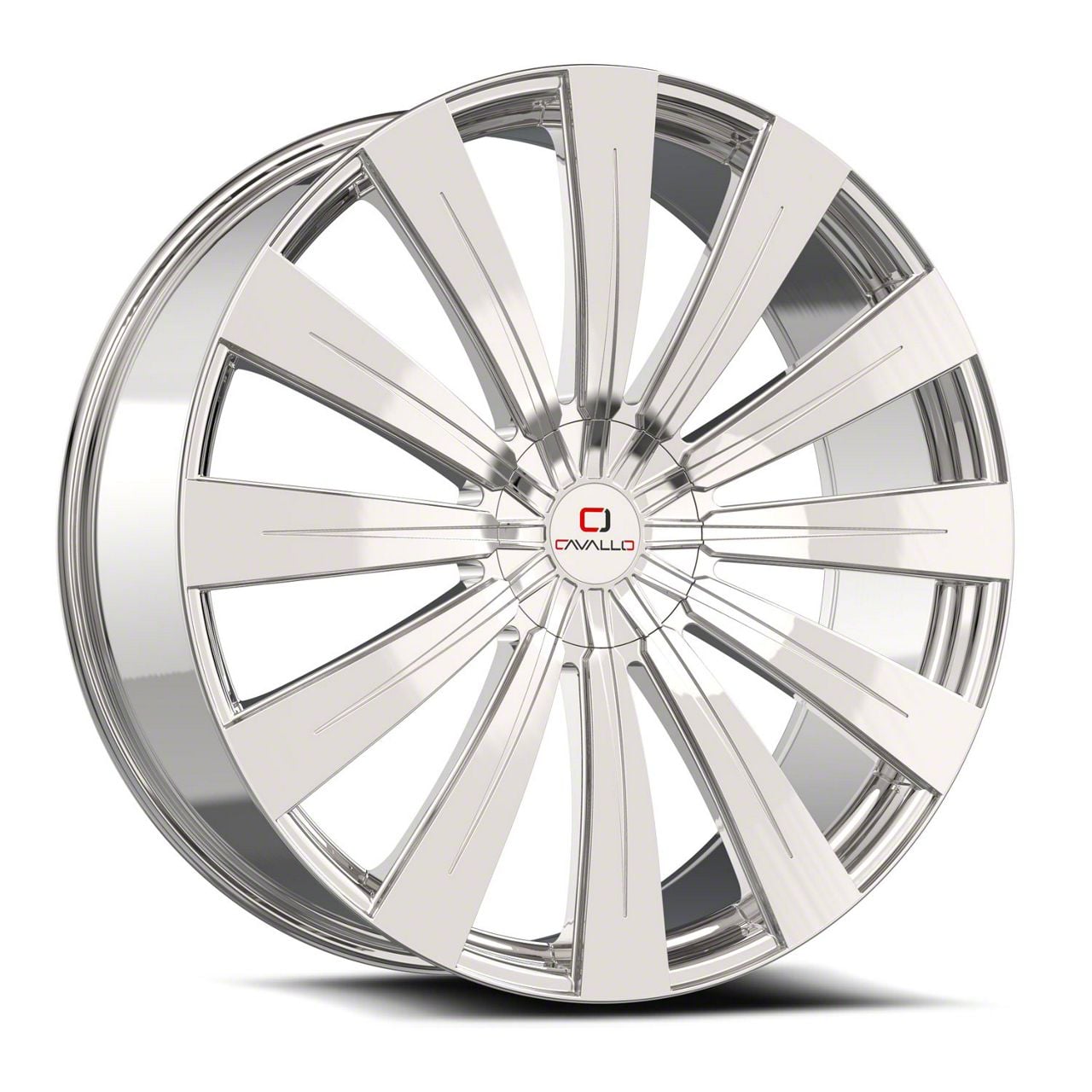 This 26x9.5 Cavallo CLV-49 Nano Chrome 6-Lug Wheel; 26x9.5; 25mm Offset is completed in a high-quality chrome finish that will make everyone take notice. Using a 3-stage process involving copper, nickel and chrome, you get a sensational bright wheel that can withstand the rigors of daily driving.