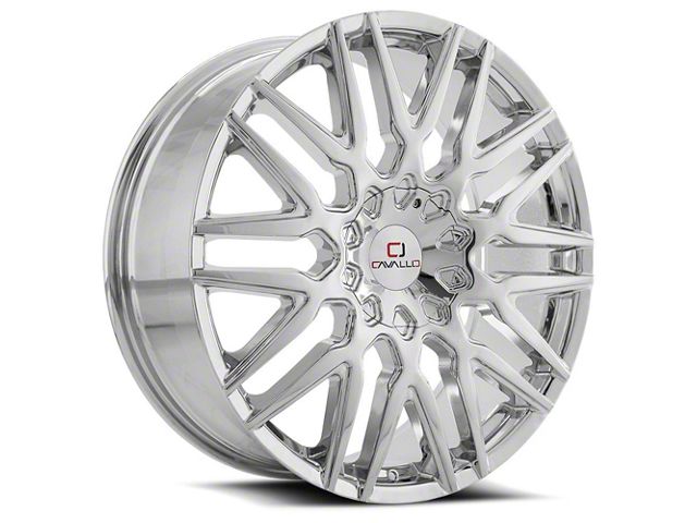 This 22x9.5 Cavallo CLV-24 Chrome 6-Lug Wheel; 22x9.5; 25mm Offset is completed in a high-quality chrome finish that will make everyone take notice. Using a 3-stage process involving copper, nickel and chrome, you get a sensational bright wheel that can withstand the rigors of daily driving.