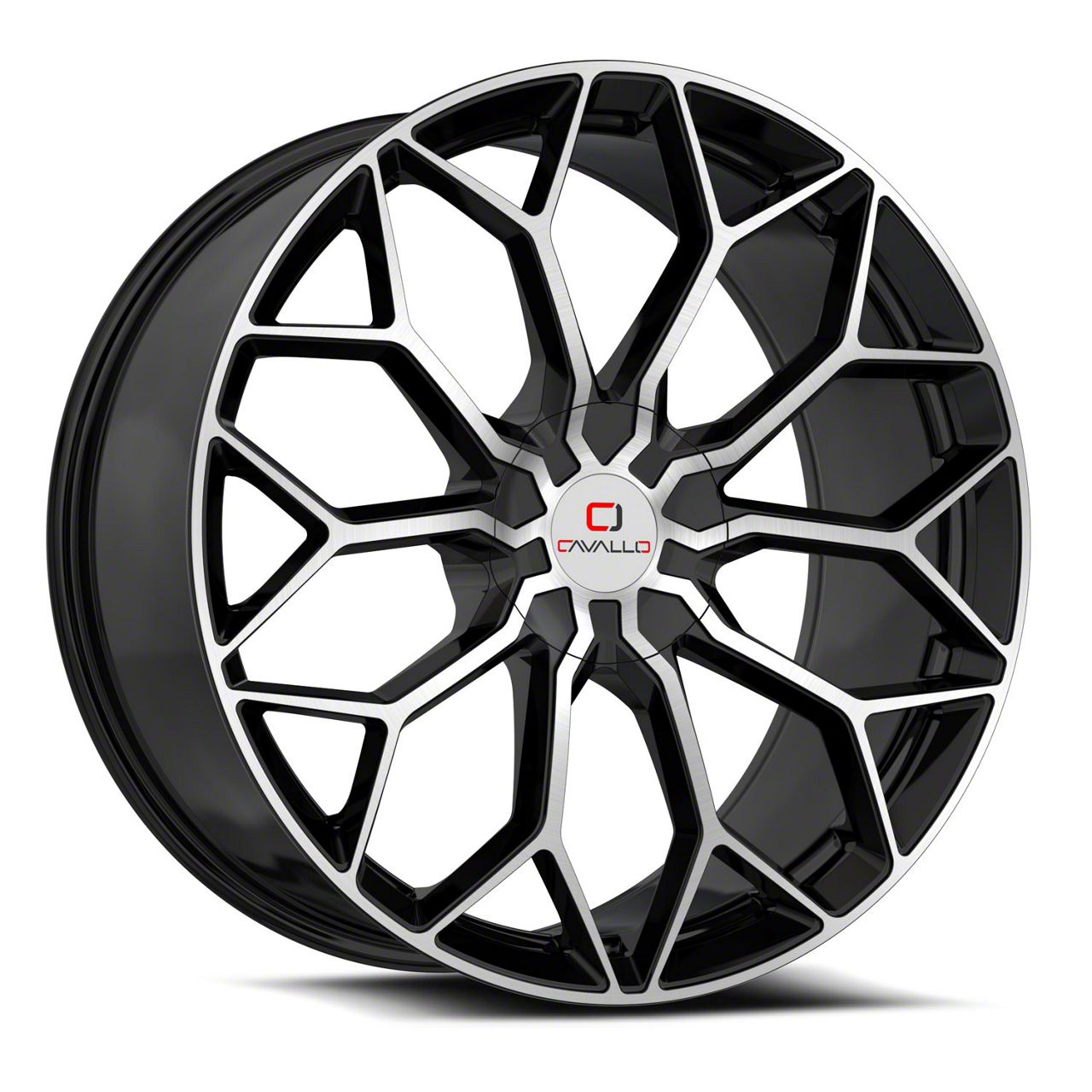Cavallo CLV-44 Gloss Black and Machined 6-Lug Wheel; 22x9.5; 25mm Offset is a visually striking choice, offering a combination of rugged durability and modern styling. Its design complements off-road and sporty vehicles alike, enhancing the overall aesthetic appeal.