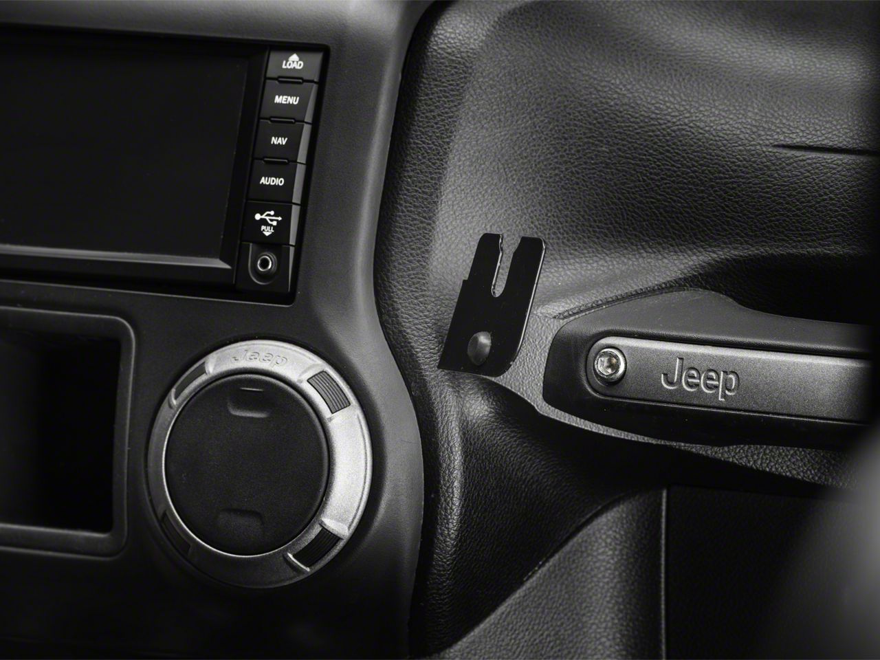 Simple Design. This CB Mount requires no drilling or hacking away at your Wrangler's interior - after all, being rugged doesn't mean being sloppy. Instead, this handset mount bolts directly on to the mounting point of your passenger grab bar for a clean, simple design.
