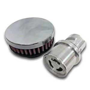 Construction and Appearance. Crafted from high-quality billet and finished in polished chrome, this breather features a sleek and durable design that enhances both performance and engine bay aesthetics. Its baffled construction and internal check ball help regulate airflow and prevent oil vapor and contaminants from escaping or disrupting engine vacuum balance.